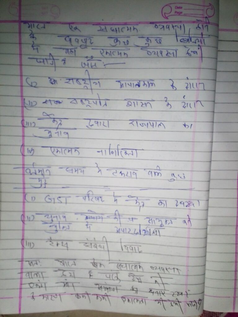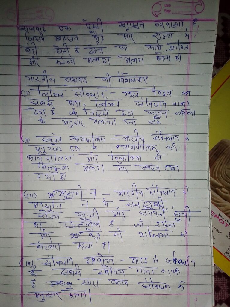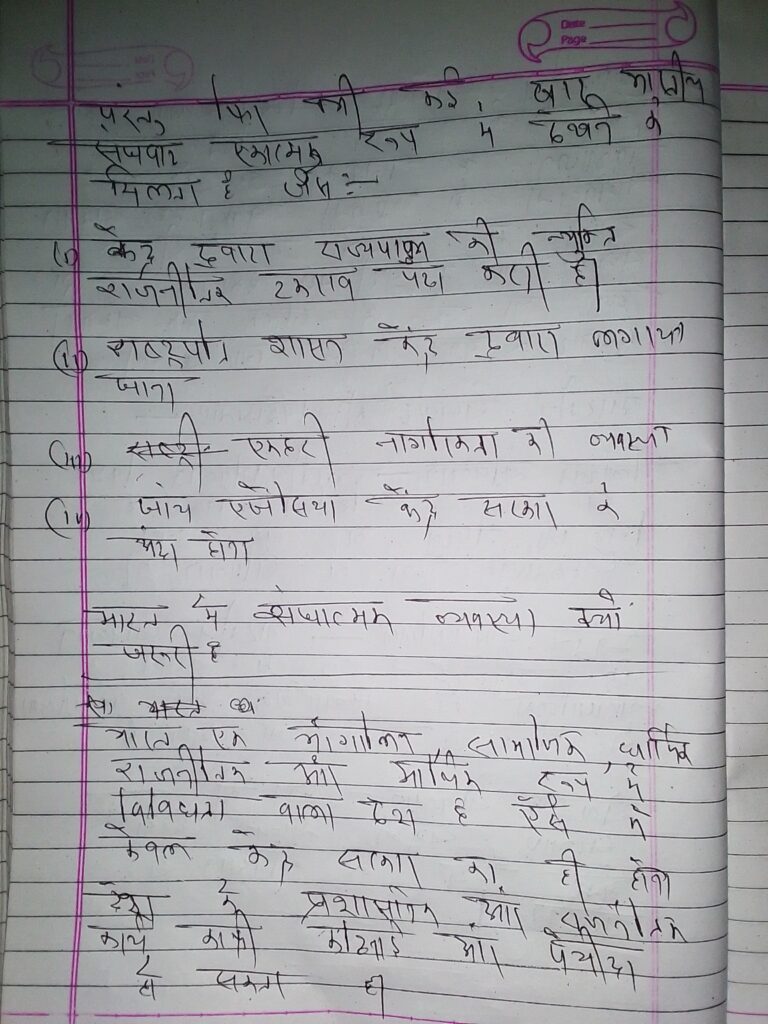 - ✅ सीधा + विश्लेषणात्मक: “भारतीय संघवाद शक्ति के विभाजन पर आधारित है, जिसका उद्देश्य विविधता में एकता बनाए रखना है। वर्तमान में इसे सहकारी संघवाद कहा जाता है, परंतु व्यवहार में कई बार केंद्र-राज्य टकराव भी दिखाई देता है।”